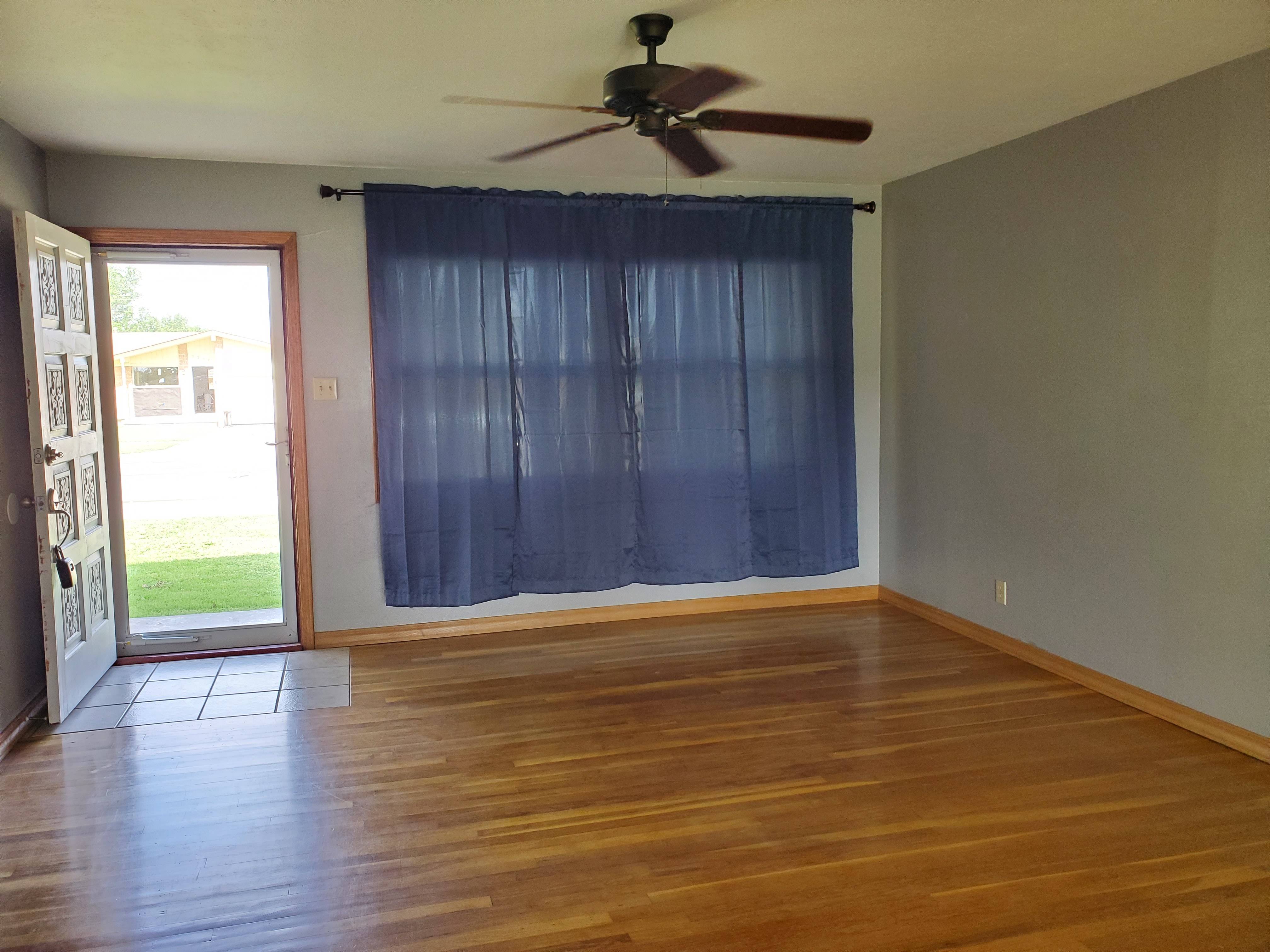 Open Kitchen/Living with Lots of Natural Light! Kitchen has a Breakfast Bar, Lots of Cabinets and Counter Space. There's a Designated Dining Area. Nice Sized Bedrooms. Hall Bath has Tile Surround Tub/Shower, Backsplash, and Heat Lamp. Master Bath has a Tall Shower. Separate Laundry Area. Wood Flooring - NO CARPET! Add'l Parking in front. NEW Concrete (2024) under the Large Covered Back Patio. NEW Energy Efficient Windows (2022), NEW CH/A Unit (2022), NEW Hot Water Heater (2024), NEW Storm Door (2024), and NEW ROOF COMING! Come See this Well-Maintained Home!